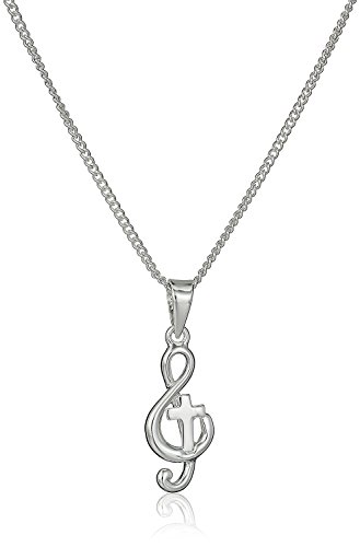 -. Title : Treble Clef Cross Silver Plated Pendant Necklace - 18 inch Chain