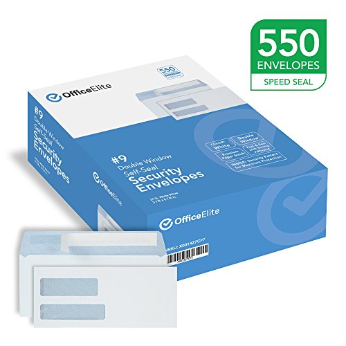 #9 Double Window SELF SEAL Security Envelopes - 550 Per Box - Designed for QuickBooks Invoices, Business Correspondence, and Legal Documents - Security Tinted - Peel & Seal - 3 7/8" x 8 7/8" - 24 LB