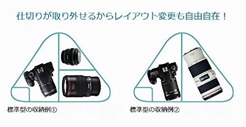 -. Feature : 標準サイズ (高さ約28cm×横幅約33cm×奥行き約11cm) / 耐衝撃クッション素材使用・拡張ベルト・三脚用専用ホルダー・ 隠しポケット / 内部の仕切りは取り外しが可能、レイアウト変更も自由自在!! / レインカバー付きで急な雨でも大丈夫!