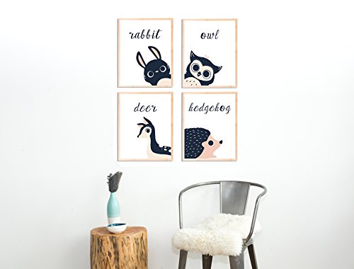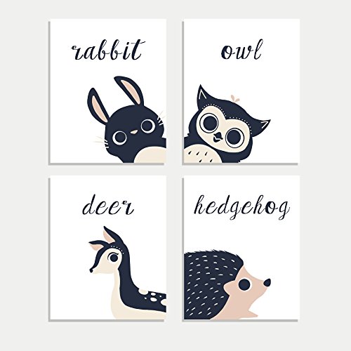 Peeking Animal Collection in English, Children's Wall Art, Set of Four 8x10 Prints, Forest Nursery, Gender Neutral Nursery, Rabbit, Deer, Owl,...