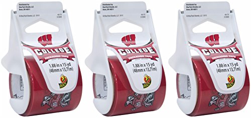 Official Badgers University of Wisconsin Duck Brand Packing Tape 3 Rolls each 15 yards by 1.88 inches