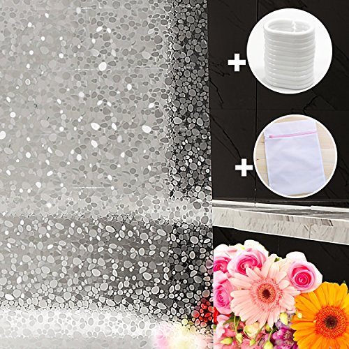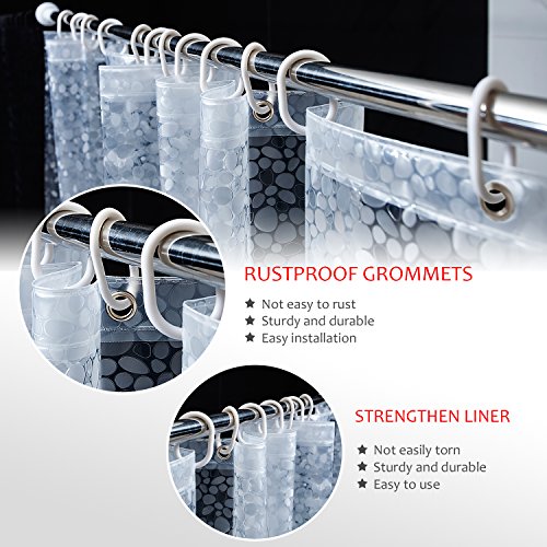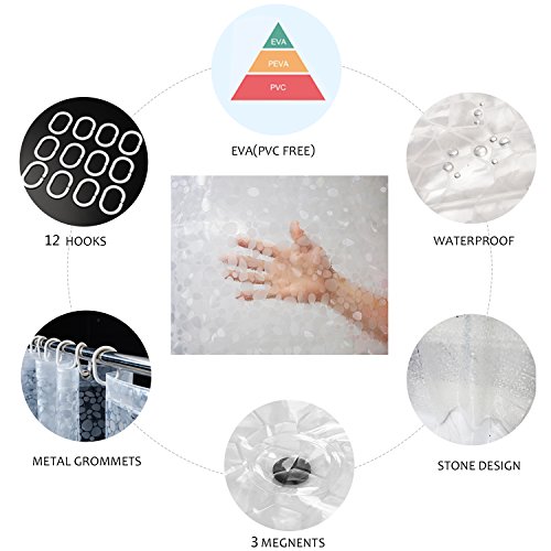 - Easy Installation - Magnets encased at the bottom to keep the shower curtain in place. Rust-free grommets and 12pcs white plastic hooks make easy installation.