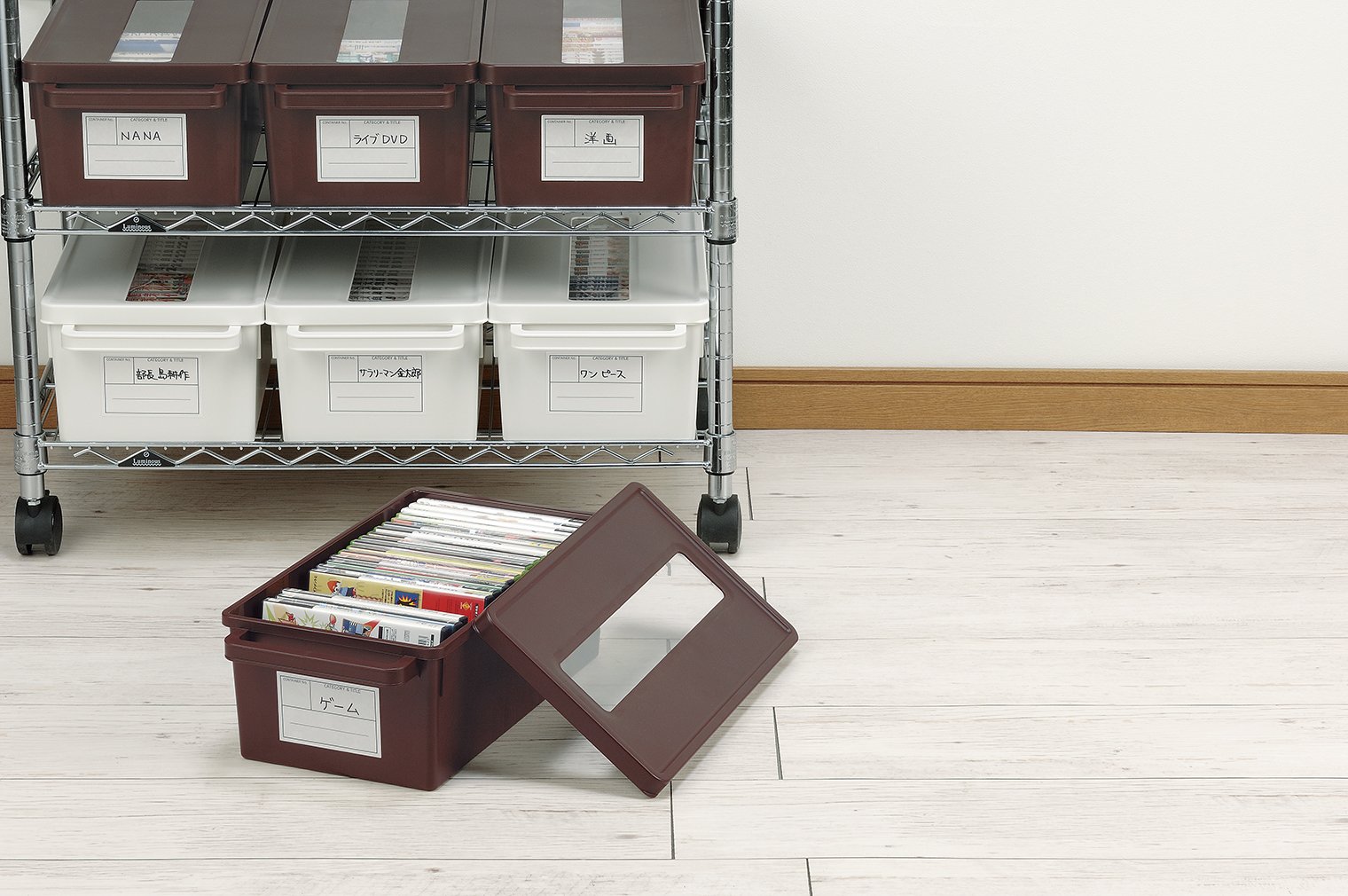 ● Because it is a lid with a small window, you can easily find the title container ● Easy to put in and out as it has a handle so it is easy to put in and put out, it's refreshing even in the appearance ● In the office in the room, you can store freely with display feeling ● About 25 media container DVDs, PS2
