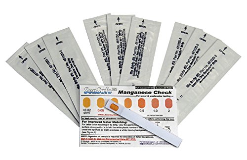 -. Feature : <0.02, 0.05, 0.1, 0.2, 0.5, 1.0, 2.0 ppm (mg/L) / Alternative to wet chemical and reagent based tests / Interferences from other metals / EPA secondary drinking water standard is 0.05 mg/l / 24 tests