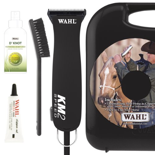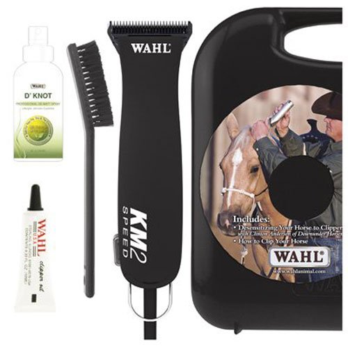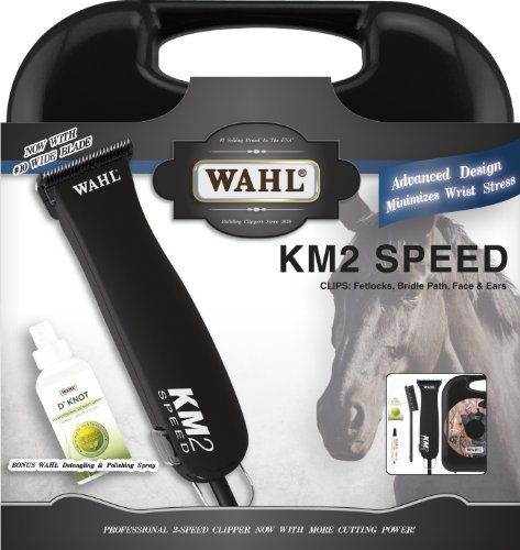 Studio : Wahl Clipper Corp. Publisher : Wahl Clipper Corp. Binding : Misc. Product Description Wahl km2 9757-700 now with more cutting power and free 4 ounce bottle of d' knot spray. powerful sealed motor that requires no maintenance is fan cooled and impact and chemical resistant. with an easy detachable no.10 wide ultimate competition series blade you can cut longer and the blade stays cooler. high torque 2 speed clipper cuts is perfect for full body clipping as well as trimming the face, bridle path and fetlocks. 16-Feet, heavy-duty power cord for easy use and maneuverability. 0
