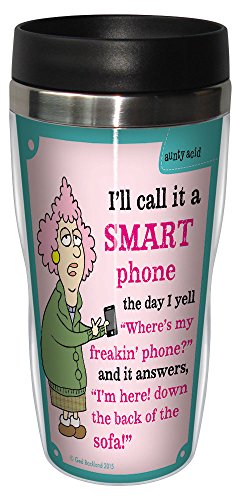 Tree-Free Greetings 16-Ounce Sip 'N Go Stainless Lined Travel Mug, Aunty Acid Not So Smart Phone (SG78621)