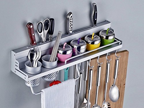 SMKF 24-inch Multifunctional Kitchen Wall Hang Storage Rack with Shelves, Spice Rack, Utensil/Pot/Pan Hanger (24-inch)