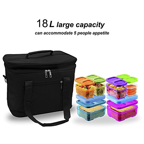 FANMAOUS Lunch Bags Insulated Lunch Box Large Picnic Thermal Cooler Tote for Adult Bag Men Women with Detachable Shoulder Strap and Soft Handle,Double Deck,Black/18L