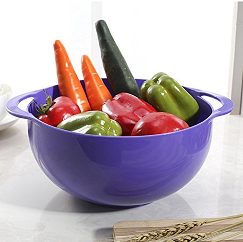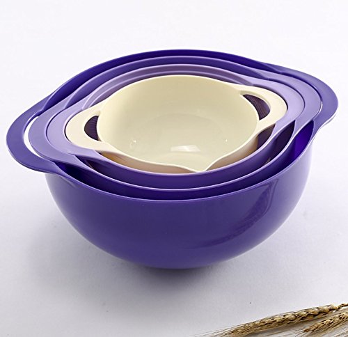 QTY: 4 PCs Package included: 1x Purple Colander: 13"L x 10"W x 6"H; 1x Purple Colander with Holds: 11"L x 9“W x 5"H; 1x Purple Mesh Colander: 9.5"L x 7.5“W x 4.5"H; 1x Ivory Small Colander: 8.5"L x 6.5“W x 3"H