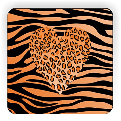 Rikki Knight Orange Leopard Heart on Zebra Background Design Square Fridge Magnet