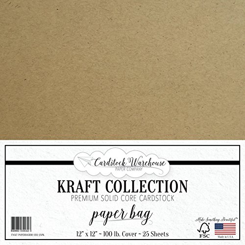 PAPER BAG KRAFT Recycled Cardstock from Cardstock Warehouse - 12" x 12" - PREMIUM 100 LB. COVER - 25 Sheets