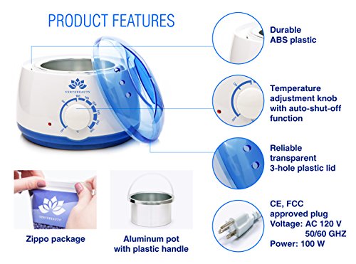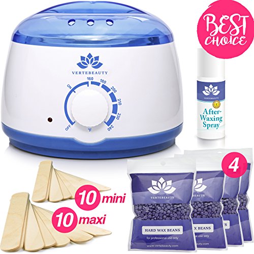 ALL-IN-ONE KIT - Electric Wax Warmer with 17oz capacity 20 applicator sticks for safe and effortless application 4 packs of scented hard wax beans and after waxing oil - your unwanted hair has no chance
