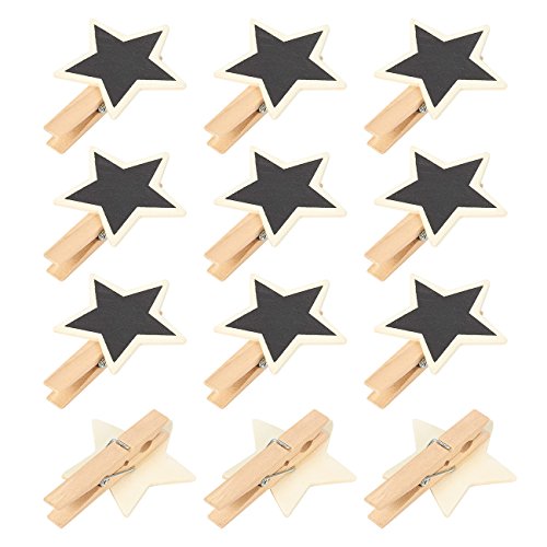 HANDY: This set of 12 wooden mini clips with star-shaped blackboards can clip onto any string you set up, helping you to complete your craft project, leave notes for housemates or inform party guests of your food and drinks