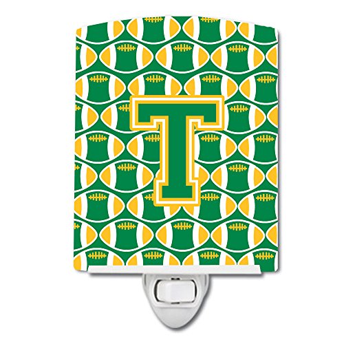 Caroline's Treasures Letter T Football Green and Gold Ceramic Night Light, 6 x 4", Multicolor