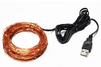 USB led string lights (flexible copper wire, 33 ft Indoor ,5V,waterproof,warm white )