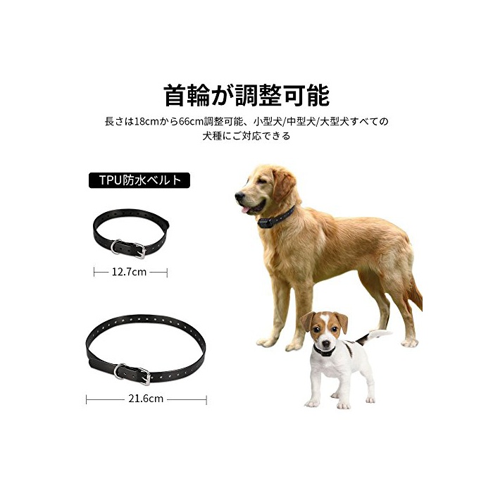 【목걸이가 조정 가능】목걸이의 길이는 18cm부터 66cm조정 할 수 있습니다만,소형견/중형견/대형견 모든 견종에 대응 하고 있습니다.콘택트 단자2종 부속 하므로,장모단털 에 따라 있습니다.리모콘의 뒤에 훅이 있고, 허리에 붙여 어디에서라도 운반에 편리합니다.