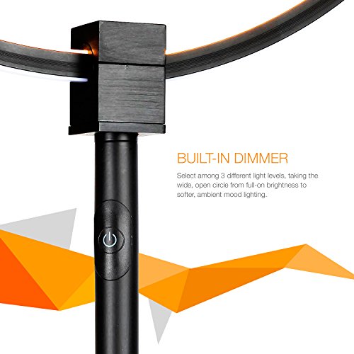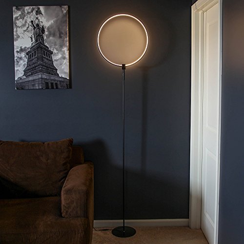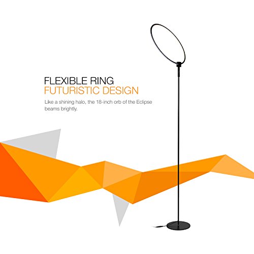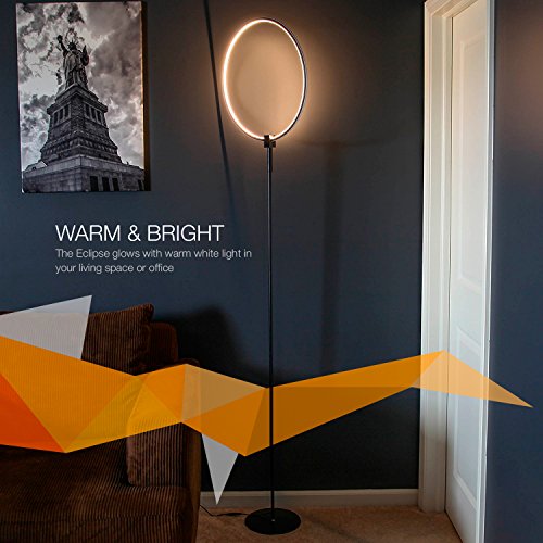 - FLEXIBLE RING FUTURISTIC DESIGN: Like a shining halo, the 18-inch orb of the Eclipse beams brightly. Inside the ring are circles of LED lights that stay cool to the touch; the ring may be adjusted up and down, illuminating the night hours in sci-fi style. Slender design makes this floor lamp a practical choice for intimate dwellings.