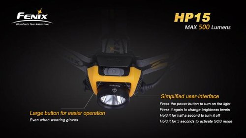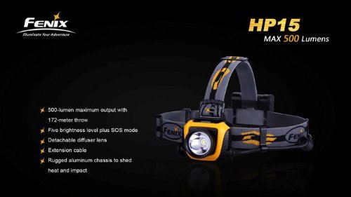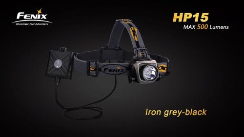 - Title : Fenix HP15 500 Lumen long throw LED Headlamp (Grey) with diffuser, Four rechargeable Ni-MH AA batteries, Charger and Four EdisonBright AA Alkaline batteries