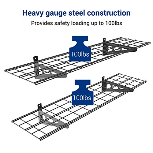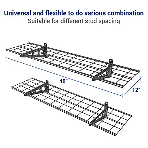 FLEXIMOUNTS 2-Pack 1x4ft 12-inch-by-48-inch Wall Shelf Garage Storage Rack Wall Mounted Floating Shelves, Black