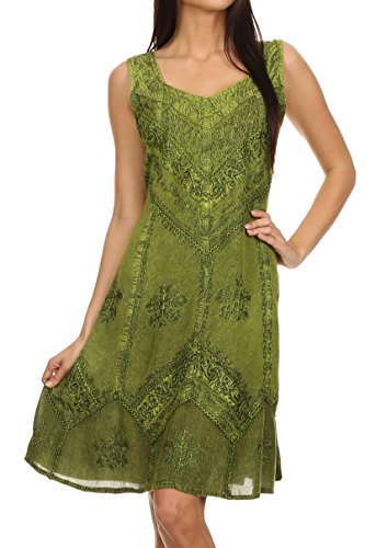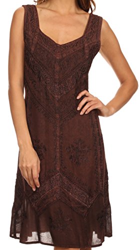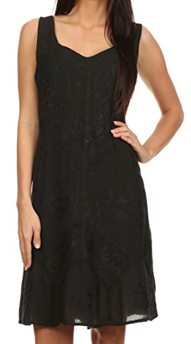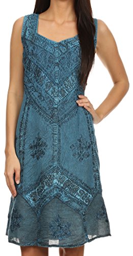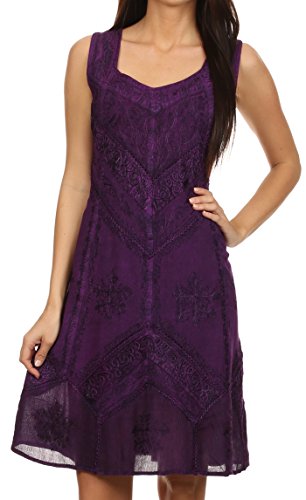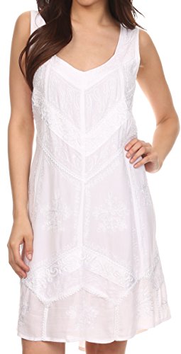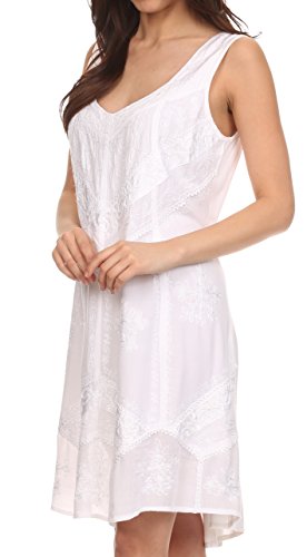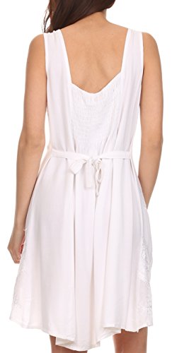 Features smocked back panel, embroidewhite details, and rear tie. Unique embroidery design, features rich solid colors, figure flattering shape, adjustable rear tie and smocked back for a custom fit. Hand wash separately in cold water. Line dry. Imported. | Material: 65% Cotton and 35% Rayon