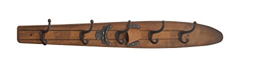 Deco 79 60640 Wood and Iron Water Ski Wall Hook Rack, Brown/Black/Silver