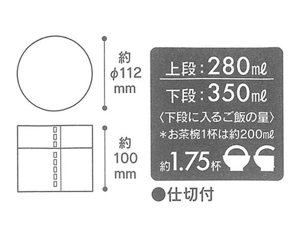 | 仕様 | 容量:630ml(上段:280ml、下段:350ml) 電子レンジ・オーブン:使用不可 食洗機・食器乾燥機:使用不可 |