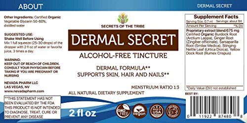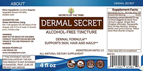 -. Feature : Dermal Secret Organic (Burdock Root (Arctium Lappa), Ginger Root (Zingiber officinale), Sarsaparilla Root (Smilax Medica), Stinging Nettle Leaf (Urtica Dioica), Yellow Dock Root (Rumex Crispus)) / Alcohol-FREE Liquid Extract, Tincture Supplement / All Natural Herbal Supplements, GMO FREE, VEGAN, MADE IN USA