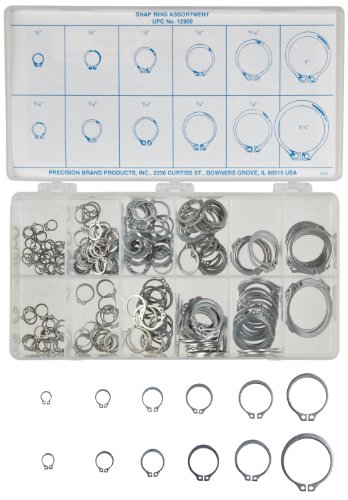Carbon Steel External Retaining Ring Assortment (300 Pieces), Zinc Plated Finish, Inch, With Case