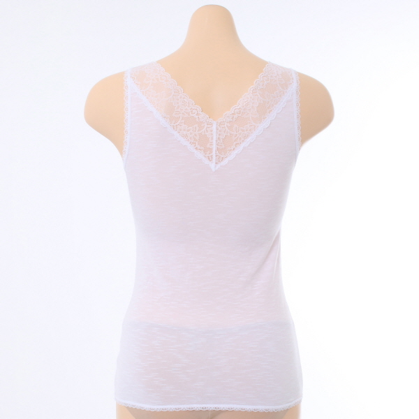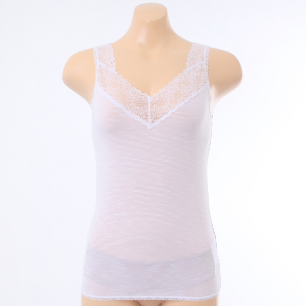 시원한 인견소재에 면 슬러브를 교직한 스판 소재에 레이스를 매치한 부인군 런닝제품입니다.