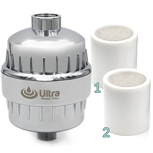 Ultra Shower Filter With 2 Replaceable 10 Stage Hard Water Purifier Cartridge & Hair Stopper for 1 Year Premium Filtration! Universal Fit. Remove Chlorine, Heavy Metals, Impurities, Harmful Substances