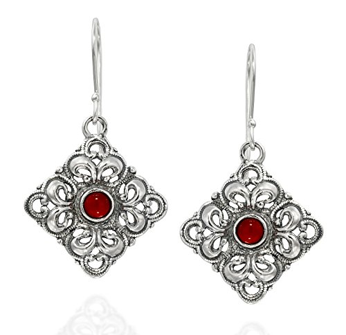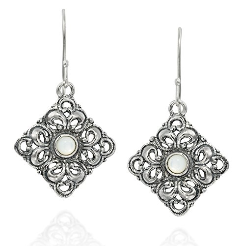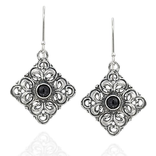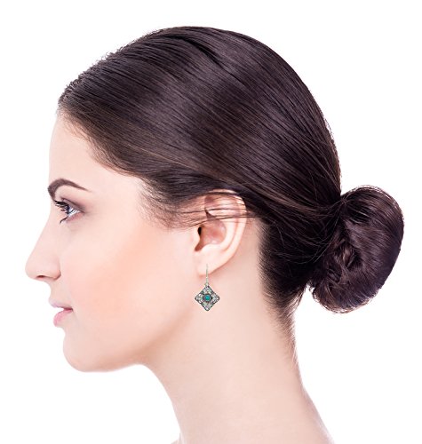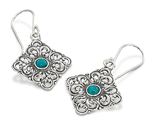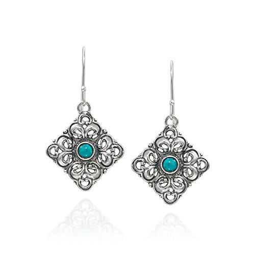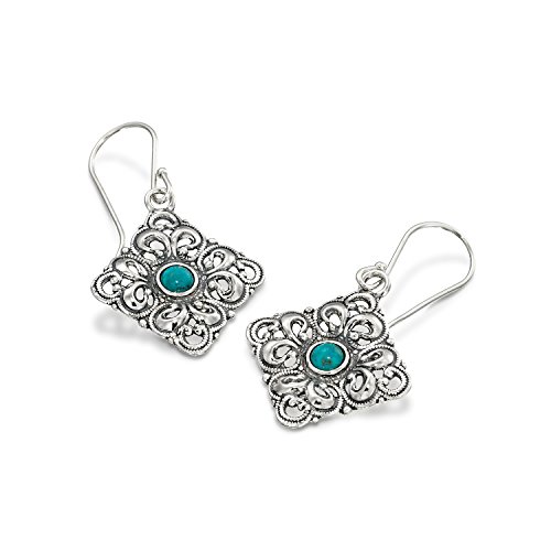 Striking Antique Style Reconstituted Turquoise Filigree Diamond or Square Shaped Dangle Earrings Measuring About 2.2 cm or over 3/4" in Size