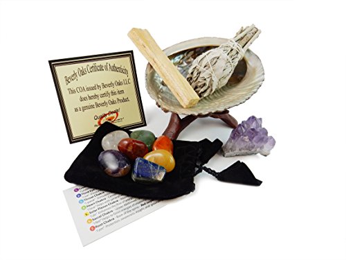 Studio : Beverly Oaks, LLC Publisher : Beverly Oaks, LLC Binding : Kitchen Product Description We have carefully assembled this Healing Smudge Chakra Kit ~ Abalone Shell Smudging Bowl on Hand Crafted Wooden Stand, White Sage Smudge Stick, Palo Santo Stick Amethyst Crystal with 7 Chakra Gemstones, Cleansing Bohemian Reiki Metaphysical Spiritual COA Info Card and Instruction Sheet. We are happy to offer this wonderful Cleansing Kit to our customers. We include an information card to help you identify the Chakra stones and their uses. The seven Chakras are the centers in our bodies in which energy flows through. These stones are great for Chakra work, Reiki healing, crystal grids and more! This set comes boxed and packaged ready to give as a gift for any occasion.