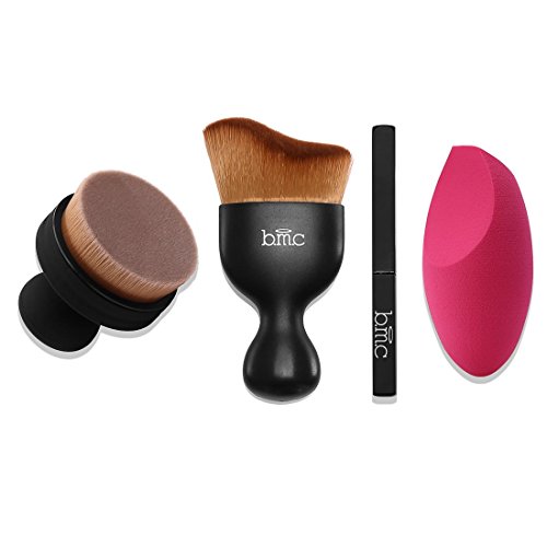 BMC 4pc Kabuki Contouring Lip Brush Set And Blender Sponge Face Perfecting Kit