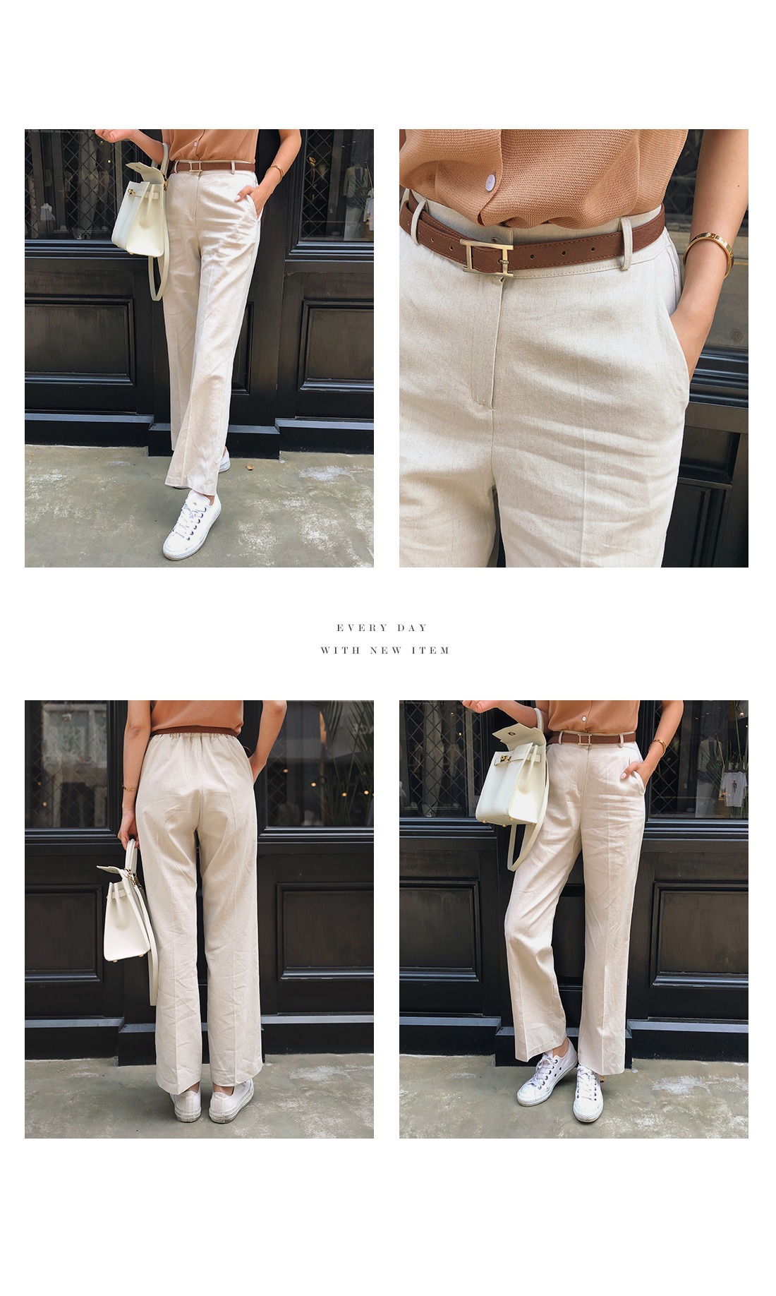 MD COMMENT 베이직한 디자인의 린넨 팬츠를 소개할게요.깔끔하고 심플한 디자인의 아이템으로데일리하게 즐겨입기 좋아요.하이웨스트 디자인으로 롱한 레그라인을 연출해드리며뒷부분 밴딩으로 편안하게 착용하실 수 있어요.린넨이 함유된 소재로 시원하게 즐겨입으실 수 있으며,다양한 룩에 매치하기 좋은 아이템입니다.프론트 양 사이드 포켓으로 실용성을 갖춰주었구요.프리사이즈로 4가지 컬러 준비해드릴게요.COLOR/SIZE 베이지,브라운,블랙FREEMODEL FITTING 베이지/FREE