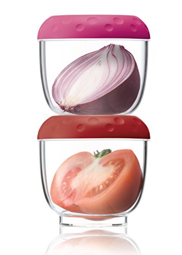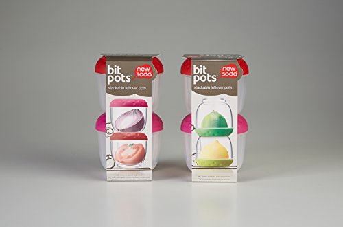 Stackable Food Storage Containers, Small Tupperware Saver Pots, Stacking Containers with Lids, Lunch Box, Fruit, Vegetables, Leftovers - Bit Pots (Red / Purple)