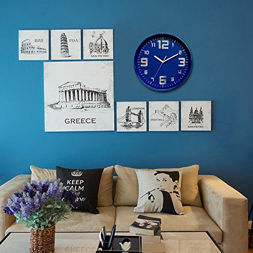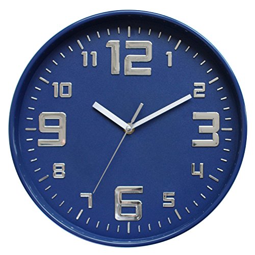 -. Title : 12-Inch Classic Quartz Noiseless Wall Clock with Bulgy Words, Silent Non-Ticking,Blue Color