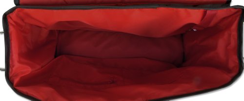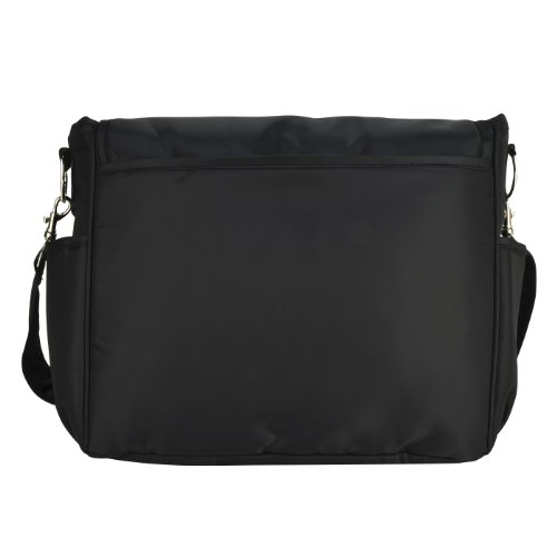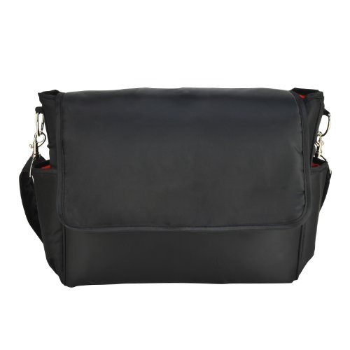 Hit the road equipped and in style with this black and brick red messenger bag by Trend Lab. Nylon bag features a black body with red lining. Outside of the bag has two side bottle pockets and one wide Velcro closure pocket on the back. Inside are two additional pockets that will keep all your travel necessities organized. Magnetic closure keeps inside contents secure. 28" – 48" adjustable strap makes it easy to carry or hang across stroller handles. Removable, coordinating changing pad and transparent dirty duds zippered pouch included. Bag: approximately 14" x 11" x 4", changing pad: 24" x 14", dirty duds pouch: 10" x 8".Feature