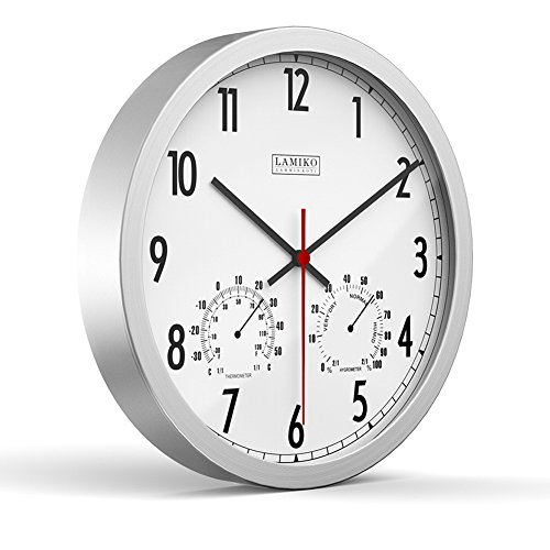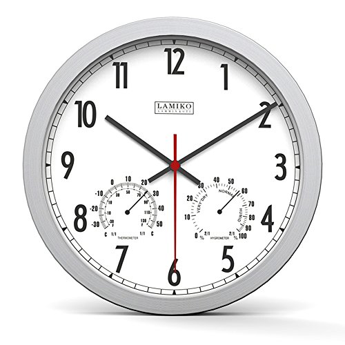 -. Binding : Kitchen -. Brand : LAMIKO -. Color : Silver -. EAN : 0613635729385 -. Feature : Creative concise digital PVC dial design including both Thermometer and Hygrometer makes it corrosion-proof, waterproof and non-deformable. / Quiet sweep second hand with no ticking problem of our wall clock ensures a good sleeping or working environment to you / Special and elegant design with concise style makes the digital clock be clear to read and able to meet all your decoration needs / Product Size:30.5X30.5X3.9cm/12"x12"x1.54"; 1x AA carbon batteries required (Not included). / GUARANTEE - Backed by our 100% no hassle refund guarantee. If you don't love this item, return it anytime for a 100% no hassle refund. With that no risk guarantee simply add one to your cart now -. IsAutographed : 0 -. Label : LAMIKO -. Manufacturer : LAMIKO -. MPN : DX906A -. PackageQuantity : 1 -. PartNumber : DX906A -. ProductGroup : Home -. ProductTypeName : HOME -. Publisher : LAMIKO -. Size : 12" -. Studio : LAMIKO -. Title : LAMIKO 12" Noiseless Non-ticking Large Wall Clock Digital Clock with Thermometer and Hygrometer -. UPC : 613635729385