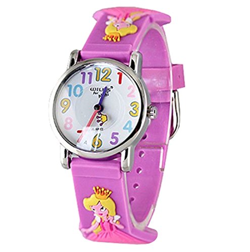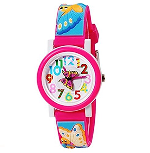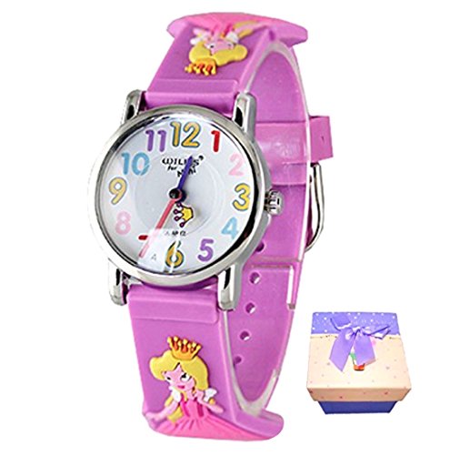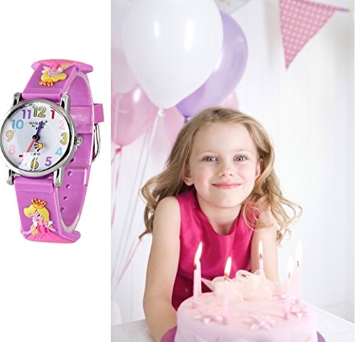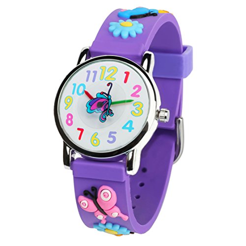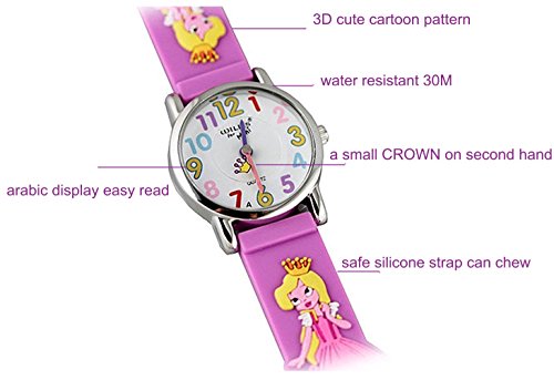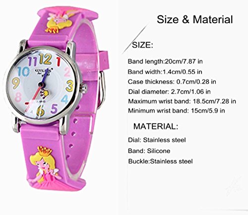 Learn to tell Time: If you are looking for a "Time Teacher" watch for Toddlers, you have found the right watch. The watch is durable and stain resistant. We insist on the use of traditional pointer&watch dial as the core design of our children watch, because we think teaching children to know the traditional clock, rather than use digital instead directly, it has very important significance. Good Choice for Kids as gift: That¡¯s good choice for kids Birthday,Holiday,Christmas Gift. It¡¯s perfect fits for 2-12 years old Kids to learning how to tell Time. If Your child is learning how to read time or understand how to tell time in a fun and engaging world effective, it¡¯s best choice for kids, they will have their ¡°OWN WATCH¡±. PRODUCT DETAILS: 1.Size & Weight Band length : 20cm / 7.87 in Band width : 1.4cm / 0.55 in Dial diameter : 2.7cm / 1.06 in Case thickness: 0.7cm /0.28 in Shape of the dial: Round Item weight : 33g / 1.16 oz 2.Material Mirror Surface: Highly Transparent Resin Glass Case material: Stainless steel Caseback material: Stainless steel Strap material: High quality imported silicone Buckle material: Stainless steel NOTE: Waterproof only in daily life .Splash/rain resistant. Not suitable for showering, bathing, swimming, snorkelling, water related work and fishing.Please Don't take this watch to swim or take shower. Avoid to put this watch on Too hot or Too cold place, Too much water contact will shorter this watch's life. Packaging: 1*watch 1*delicate watch box Pls check our store for more kids watches.We have dozens of kids watches for your choose!Feature