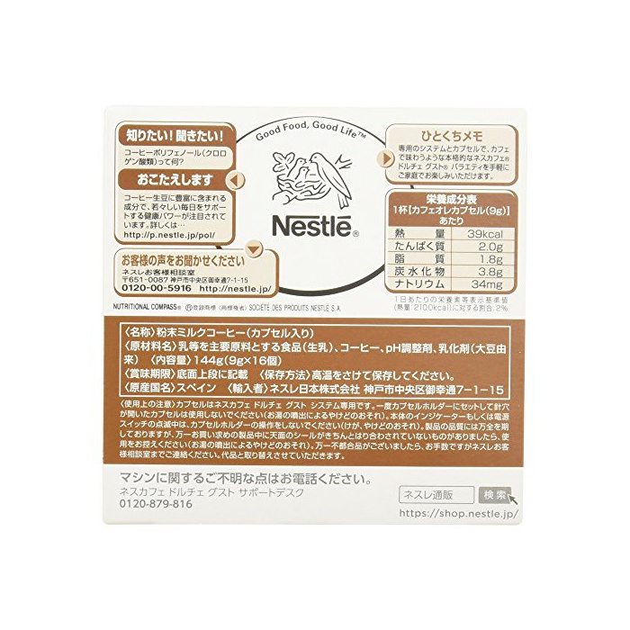 원본상품명: ネスカフェ ドルチェグスト 用カプセル カフェオレ 16杯分