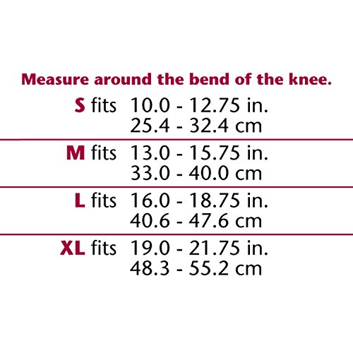 -. Feature : Sheer elastic fabric provides effective, lightweight support; helps improve circulation to promote healing. / Post cast/surgical support for weakened knees. / Inconspicuous beige color. / Provides comfortable, uniform compression. / Measure around the bend of the knee. Available Sizes: Small (10-12.75 inches), Medium (13-15.75 inches), Large (16-18.75 inches), and X-Large (19-21.75 inches).