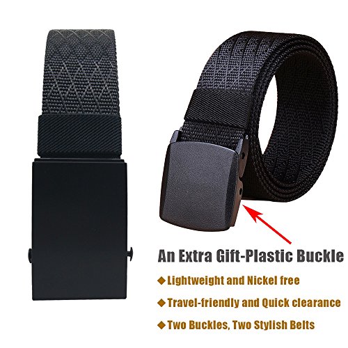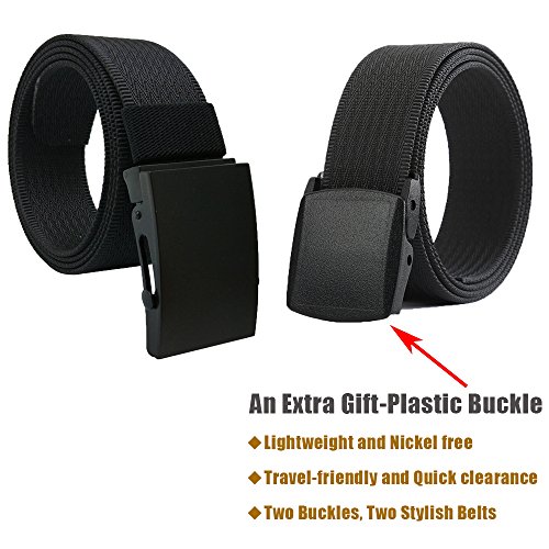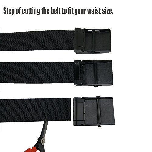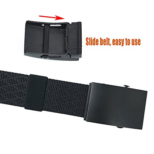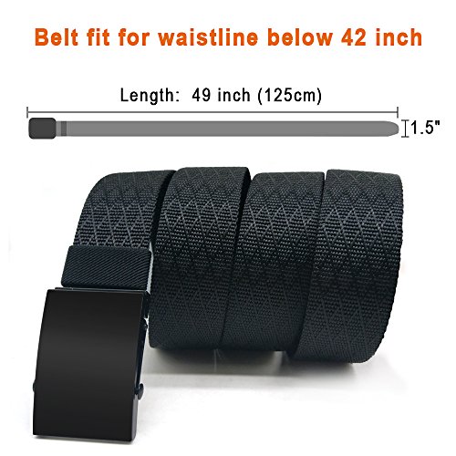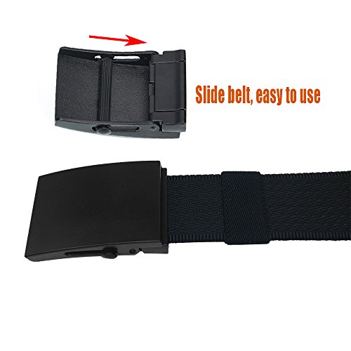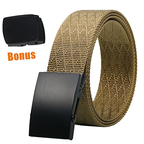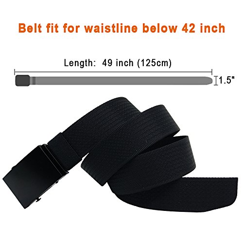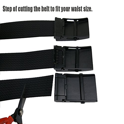 -. Feature : Tactical military belt-- The belt is made of soft and firm nylon webbing and black slide metal buckle. Cool army style belt for men to hold an OWB holster well, EDC molle bag for phone, walkie talkie, gps. Men's outdoor sports, hunting, hiking, camping, trekking tactical military belt. / Well-made slide metal buckle belt-- The classic black metal buckle which is sturdy at i/2" thick but not bulky. 1.65" wide buckle. A simple belt that the buckle opens/closes easily. Holds up tightly. / Completely adjustable belt-- The web belt has a heavy elastic retainer band and the webbing end is hot knife cut to taper one edge and end. Trimming to size is easy due to no holes in the strap. If no fit your size, just cut and heat seal to all waist size below 42". / Soft and firm nylon webbing belt-- Use high quality nylon material, 1.5-In wide, exquisite weaving. Soft and comfortable, dry fast and lightweight, close fitting your waist. / Extra plastic buckle is travel-friendly, lighter, great with jeans. Can wear it to pass through metal detectors. Totally two buckles for replacement. If any problem of this unisex tactical belt, pls don't hestitate to contact with us firstly. LIFETIME GUARANTEE!