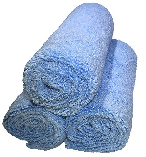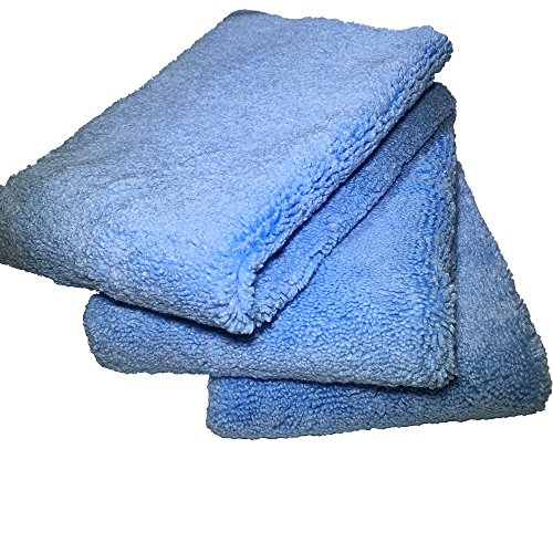 Auto Detailing Towels (3 Pack) 16in x 16in - Best Multiuse Microfiber Car Cleaning Buffing and Dusting Cloth - Professional 70/30 Blend 500 GSM - Super Thick & Plush Dual-Pile - Blue Edgeless Trim