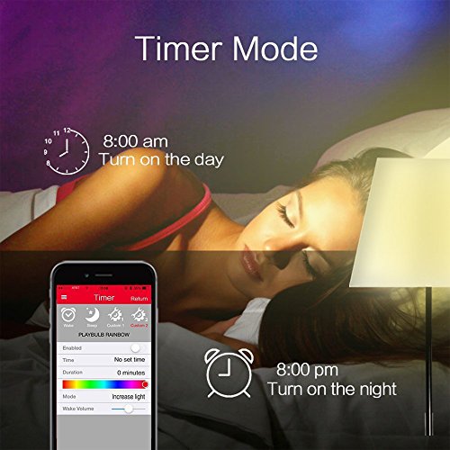 - Timer and Group Control: Customizing your personal time and color for wake up or go to sleep. You can simultaneous control several bulbs via PLAYBULB X App, it is an enjoyable experience to change colors in bulk, each group up to 5 bulbs.