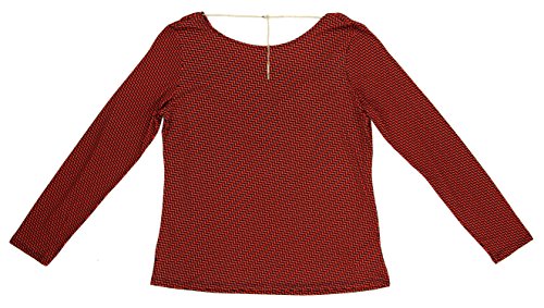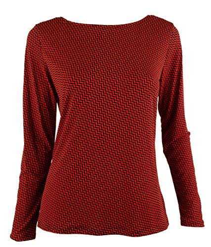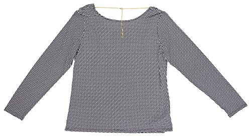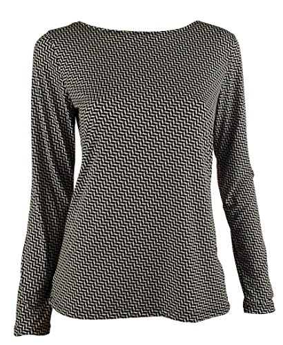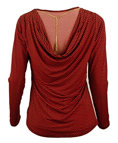 A herringbone-printed jersey top reveals your beautiful back with an elegantly draped cowl neckline anchored from a gleaming pendant chain.