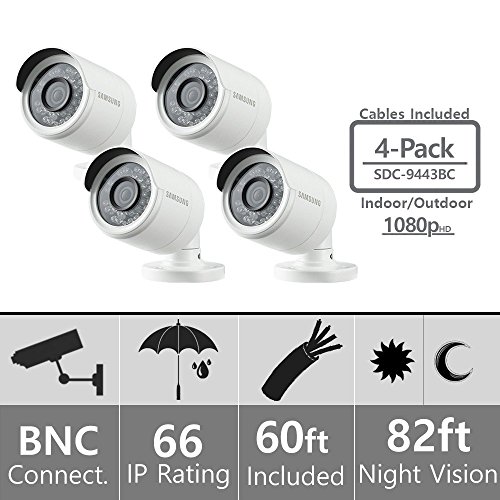 (Set of 4) Samsung SDC-9443BC 1080p HD Weatherproof Bullet Camera (Compatible with SDH-B74041 & SDH-B74081)