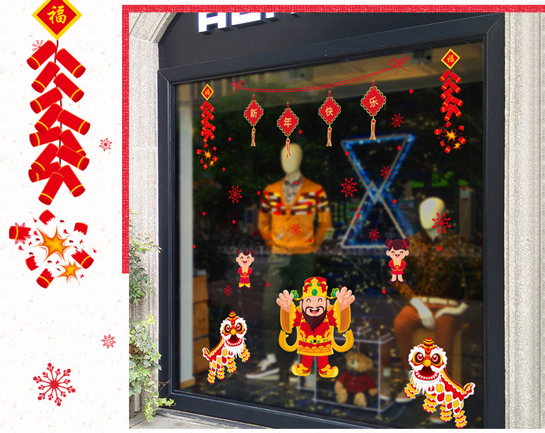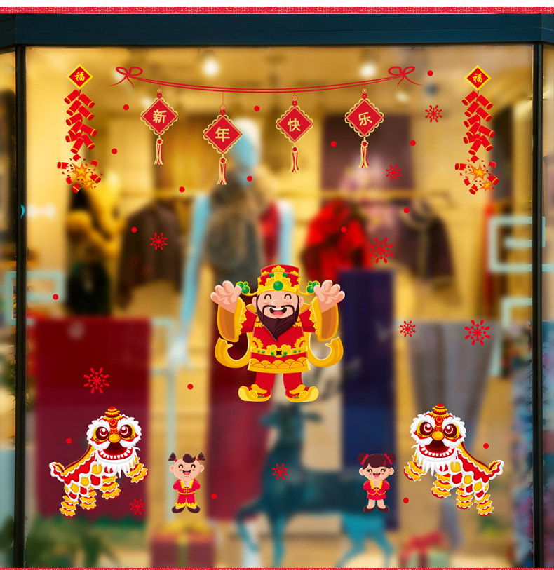 春节元旦新年喜庆贴纸商店玻璃橱窗装饰贴纸贴画灯笼窗贴挂件