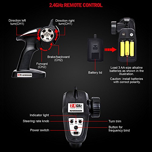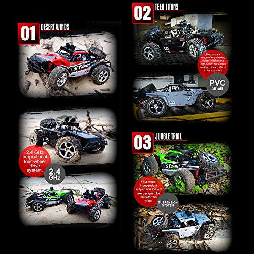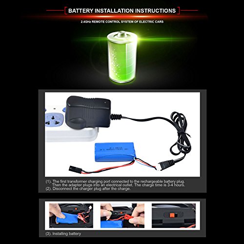 Feature: Metal parts, more durable. Gears made of metal, more smooth and don't get stuck easily. This ensures high-efficiency rotation and longer lifetime than plastic gears. Metal differential gear works together with metal transmission shaft. This help achieve difficult movements such as drifting. Suspension shockproof system, highly responsive steering and throttle with Hi-Q rubber wheel, anti-skid! Independent suspension system is adopted with a helical spring with high resilience for each wheel, which creates impressive damping effect and a more steady drive. Transmission shafts rotate with high speed and little bearing. It's vital to keep its dynamic balance. Specifications: Material: Metal/Electronic Components Recommend for: Age 12 Speed: 50km / h Charging Time: 2-3 hours Playing Time: 20-30 mins Controller: 2.4GHz Radio Remote Control Control Distance: More than 100 meters Car Battery: 7.4V 1500mAh Li-ion-Fe Battery Remote Control Battery: 3 x 1.5V AA Battery (not included) Function: Forward / Backward, Turn Left / Right, Climb, Drifting Car Size: 41 x 22 x 16.5 cm/16.2 x 8.6 x 6.5 inch Package Size: 45.8 x 29.7 x 21.2 cm/18.1 x 11.7 x 8.3 inch Weight: 2.65kg /2.75 kg Package Included: 1 x RC Car 1 x Car Battery 1 x Transmitter 1 x Charge Cable 1 x Manual The Charger Adapter or Wall Plug NOT INCLUDED! Please note: Minimum use age recommended is 12 year old. This is a high speed rc car. Please avoid hit object when it's in high speed running. It need to stop accelerating immediately while the RC car is stuck which can not go forward, otherwise the motor would be damaged by overheats and smoke. All parts has part number from the manual book, and all parts can be replaced.It's easy to upgrade and repair. 0 |