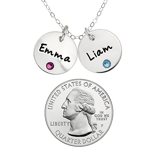 -. Title : Personalized Sterling Silver Double Round Name Charm Necklace with Choice of Swarovski Birthstone Settings