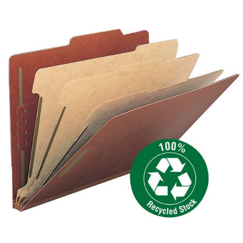 -. Title : Smead 100% Recycled Pressboard Classification File Folder, 3 Dividers, 3" Expansion, Legal Size, Red, 10 per Box (19099)